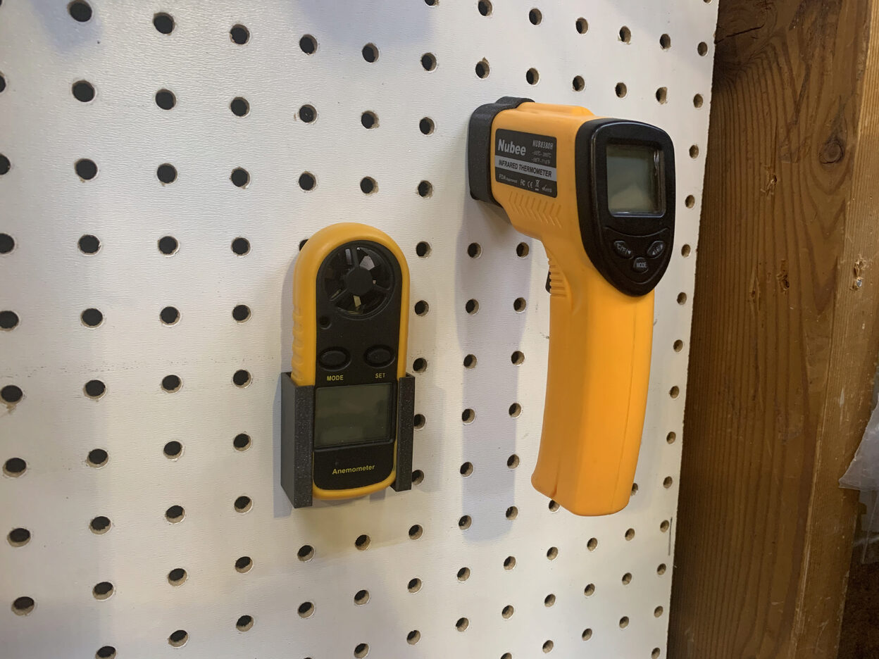 Pegboard Mounts for my Anemometer and Infrared Temperature Gun