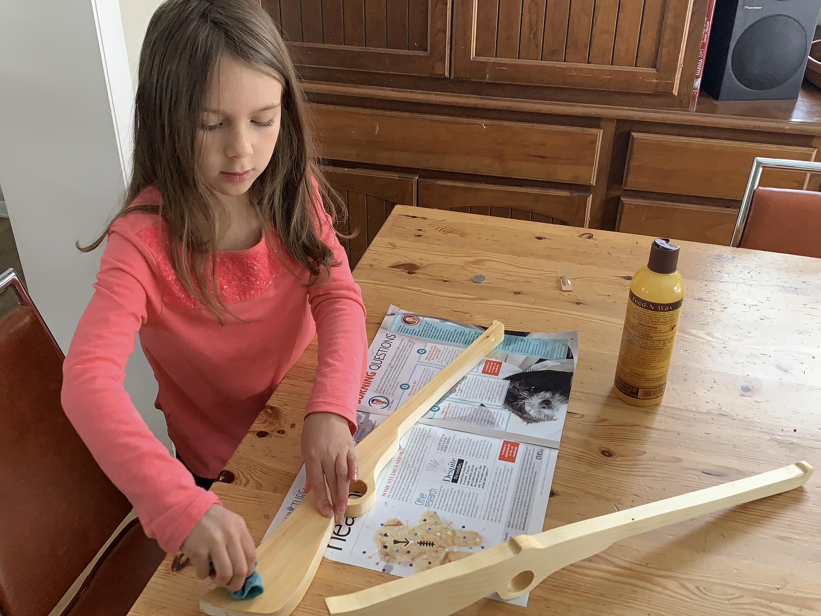 It was a snowy day in October and my daughter wanted to dress up as Annie Oakley for Halloween, so we decided to make her a wooden toy rifle.